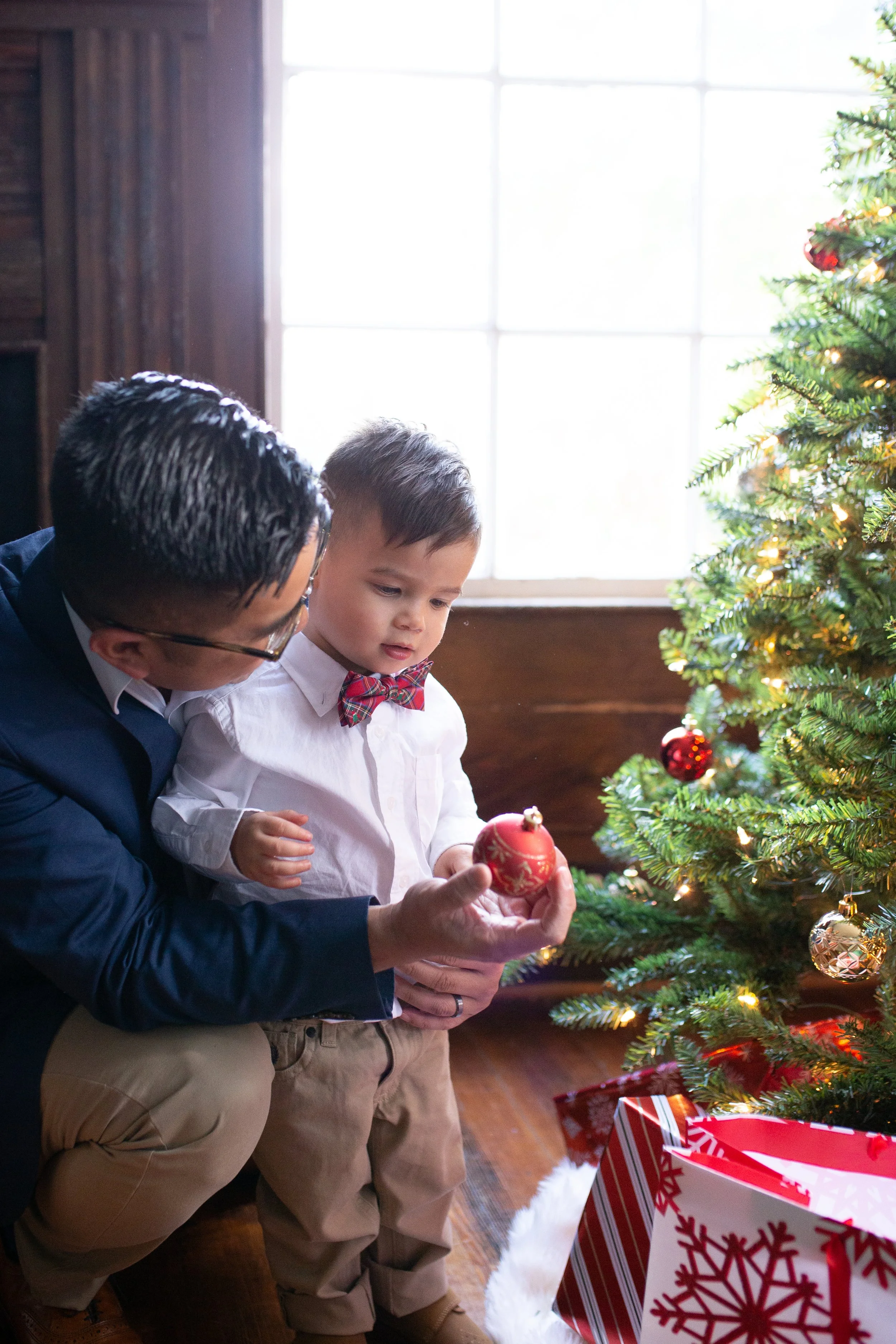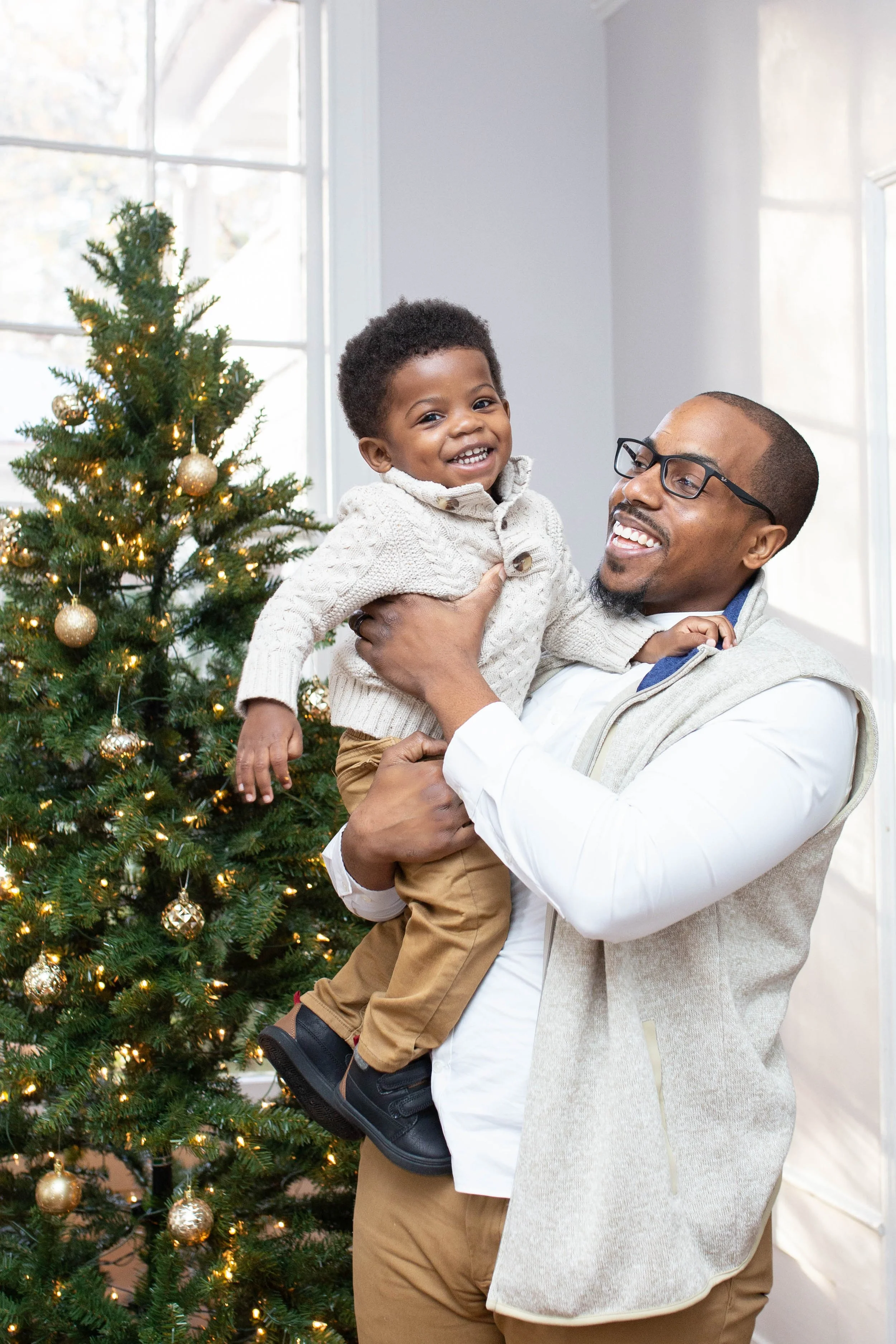 We will have two sets used to photograph you during the 45-minute session. One will be a living room set up with a couch, Christmas tree, and decor. The other will be a simple backdrop (color TBD based on client feedback survey sent after booking).